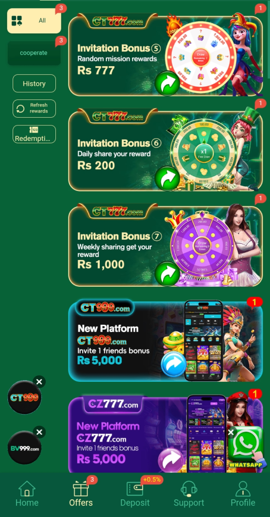 The app supports popular payment services such as JazzCash and Easypaisa. Deposits and withdrawals are designed to be convenient for local users.
